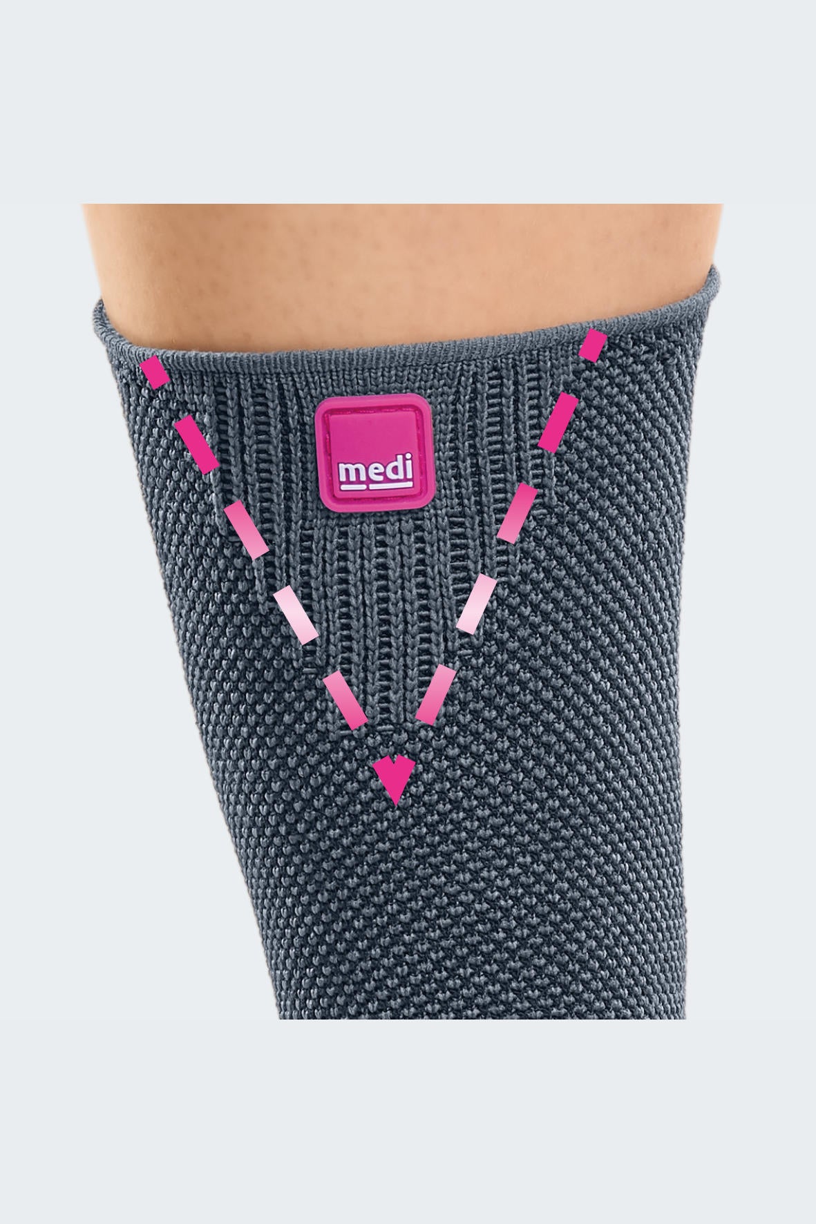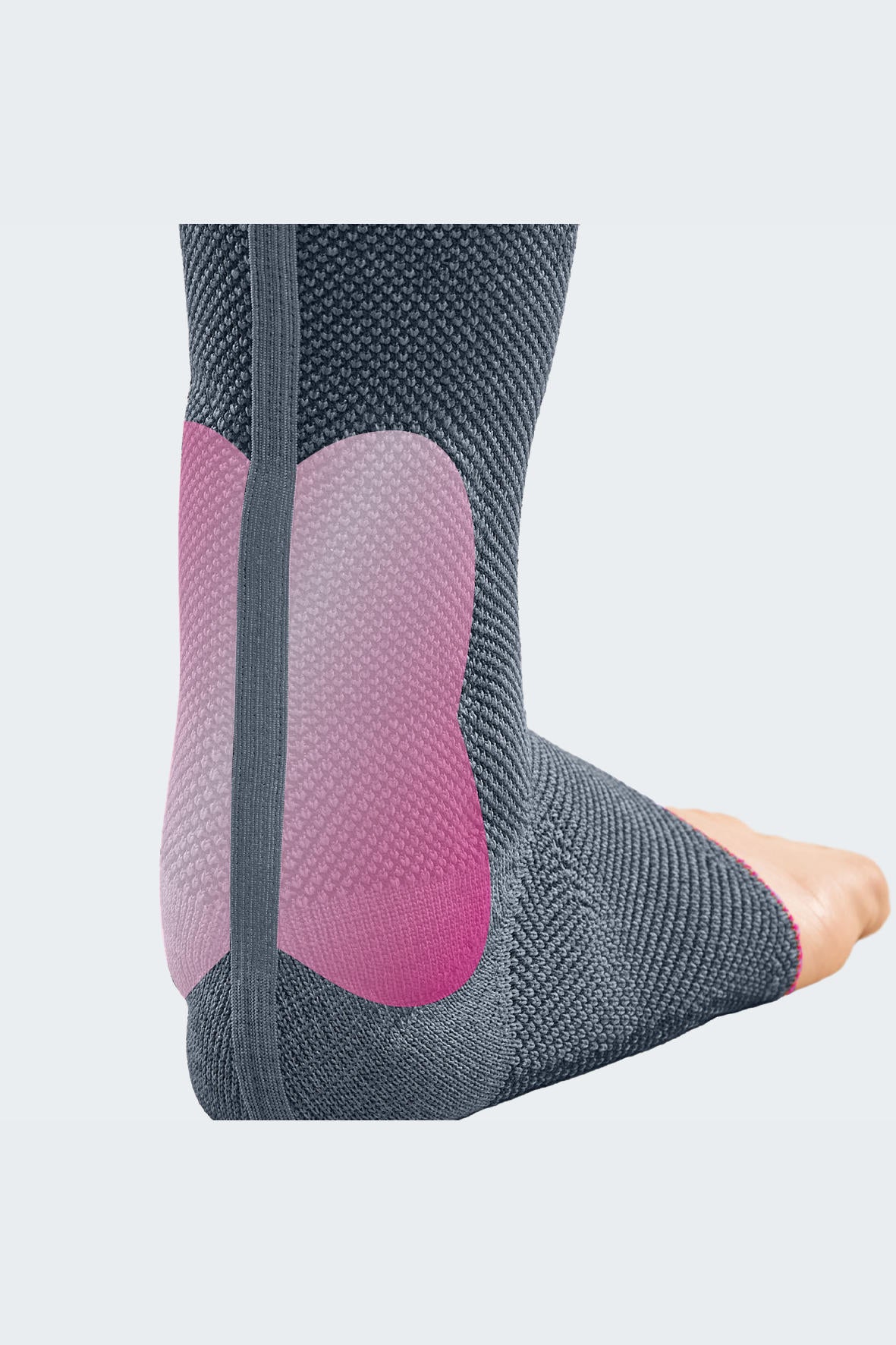 The Achimed is an anatomically tailored Achilles tendon support with integrated silicone support cushion. The clima-comfort fabric is highly elastic, breathable and moisture wicking and includes a special comfort zone knitted into the instep portion to prevent constriction and pressure areas. The clima-fresh treatment helps ensure odor-free performance. Included are two silicone heel wedges to provide tension relief when required.