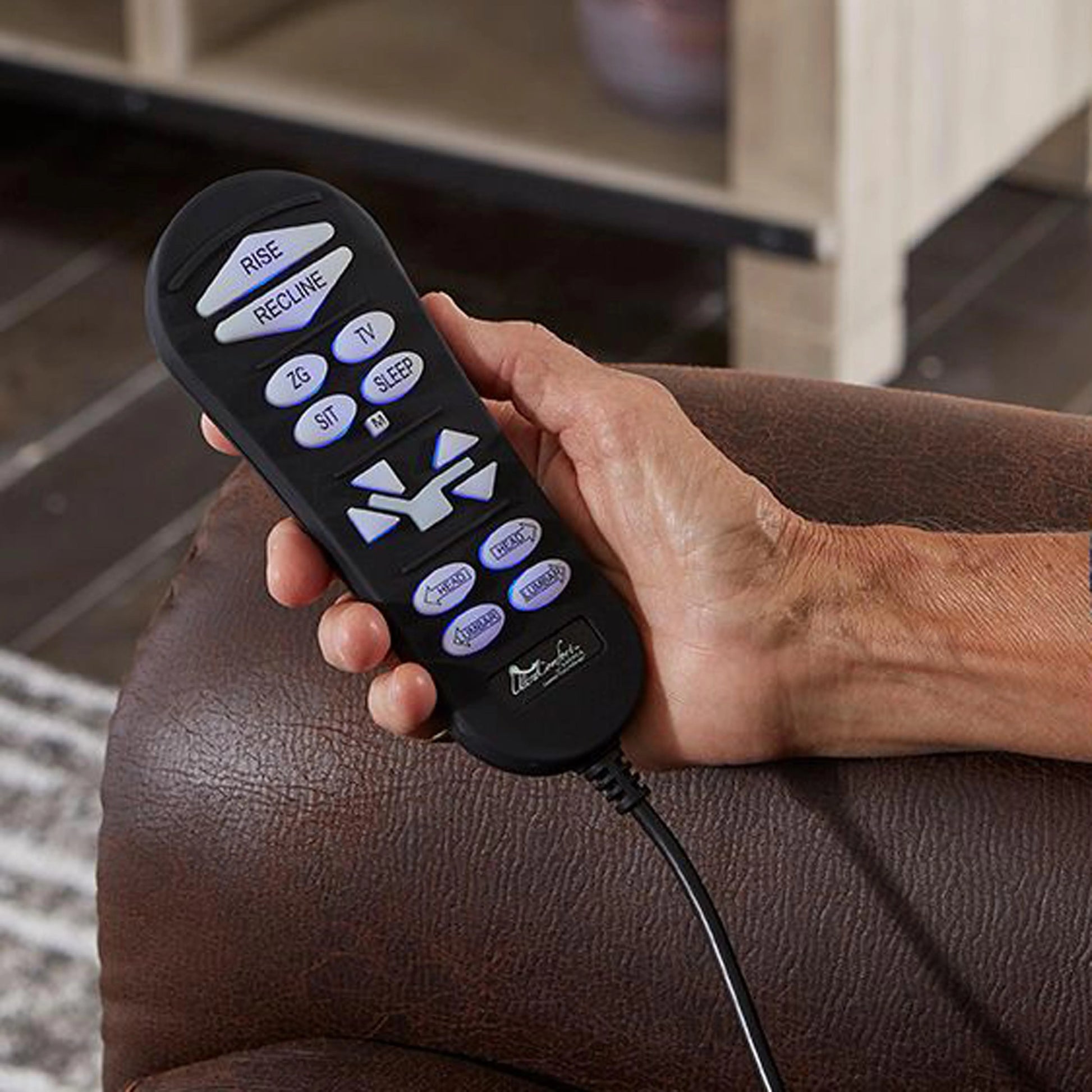 Available in generous 20" or 22" seat widths and supporting up to 400 lbs, the Dione PR-446 is ideal for users who spend extended time in their chair and want easy-to-clean faux leather upholstery that resists stains. A convenient USB port is built into the hand control for charging compatible devices.