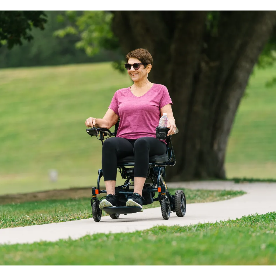 Built with a durable carbon-fiber frame, the Jazzy Carbon 27 combines strength and portability in a sleek, modern design. It folds quickly and easily for transport and storage, fitting conveniently into most vehicle trunks. With smooth maneuverability, a tight turning radius, and intuitive controls, users can confidently navigate homes, stores, and sidewalks.