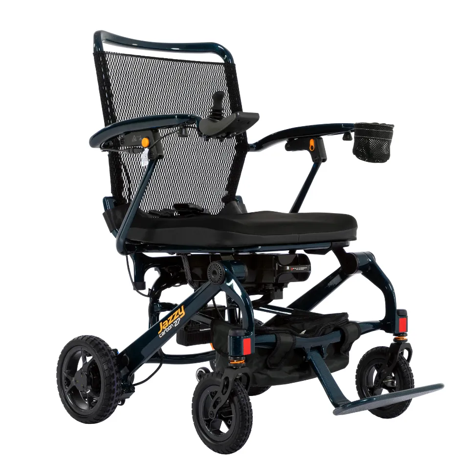 Perfect for active individuals, seniors, and frequent travelers, the Jazzy Carbon 27 delivers independence, convenience, and premium craftsmanship in a compact power wheelchair.