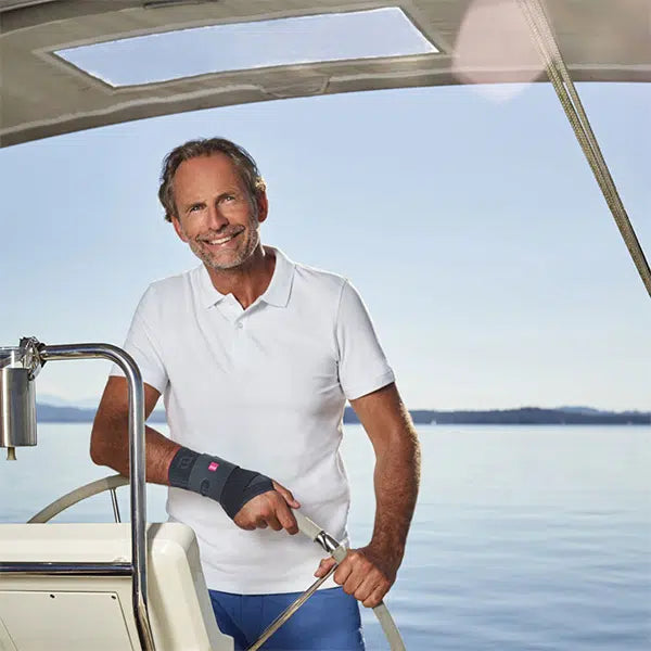 The Manumed Active is an anatomically tailored wrist support with integrated optimally sized volar splint. The volar splint is anatomically pre-shaped and can be heat molded if required for a precise fit. The clima-comfort fabric is highly elastic, breathable and moisture wicking and includes special comfort zones knitted to prevent constriction and pressure areas. A special wrist strap designed to provide specific support and relieve unwanted point pressure is included.