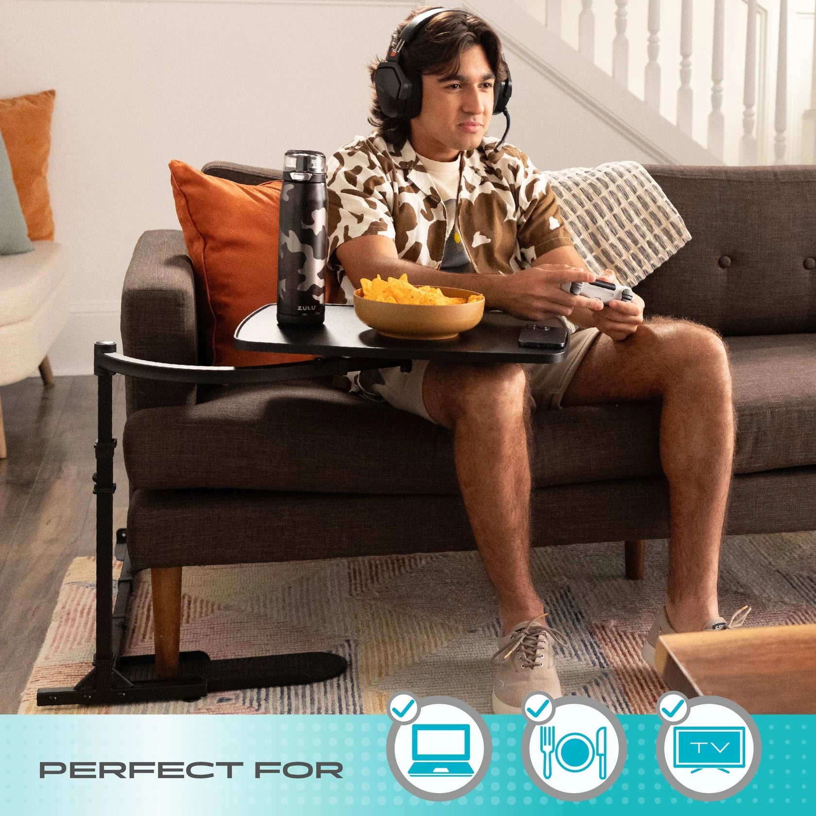 Extra-large tray surface provides ample space for meals, laptops, and daily essentials